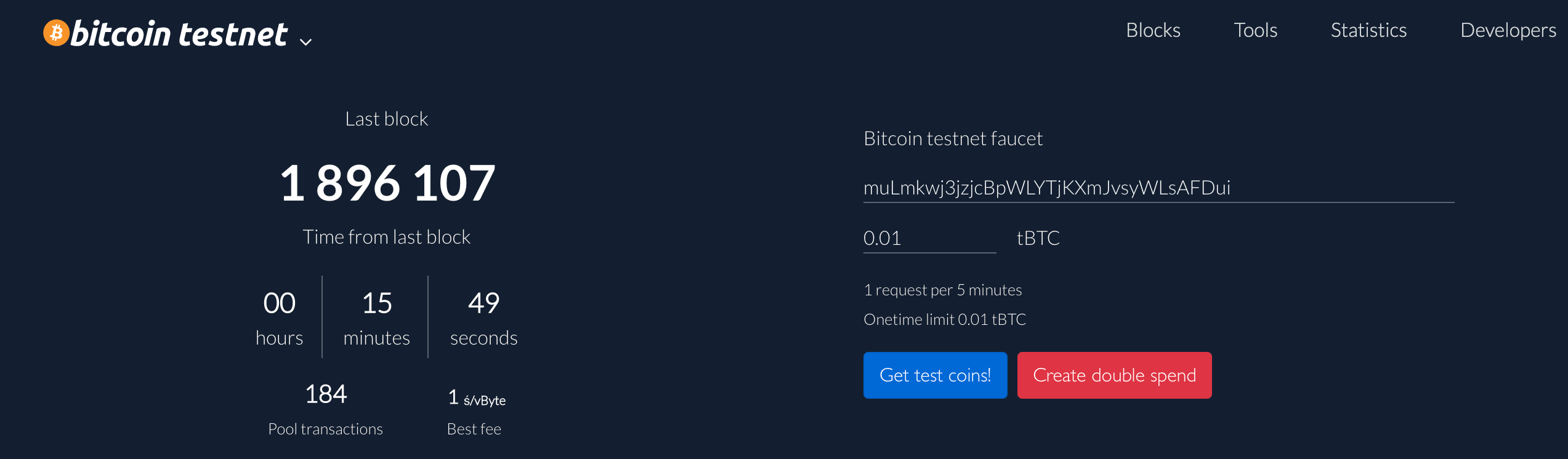 You will receive 0.01 testnet BTC after you choosing “Get test coins!” — you probably will wait for 5 more minutes, just be patient, you will get the tokens and you’re almost done!